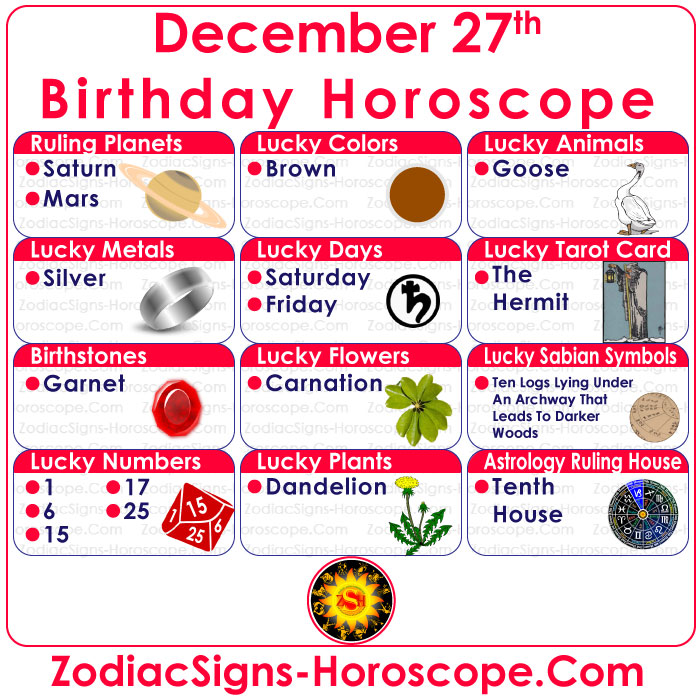 December 27 birthday means that you will be an active entrepreneur who will most likely succeed in life. You are also going to be a prudent fellow as a result of your element. Apart from this, the greatest strength you will have are the positive traits of your element. You should embrace it and keep it with you to be strong and better—Run away from the conservative nature of your element for success in life.